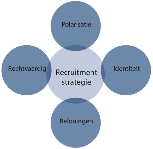 Figuur 1 De vier thema's die belangrijk zijn in de rekruteringsstrategie van IS