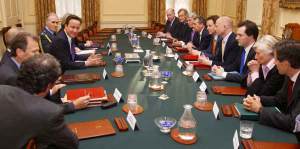 Premier David Cameron (linksmidden) zit een vergadering van de Britse National Security Council voor, een forum voor coördinatie en integratie. Foto Reuters