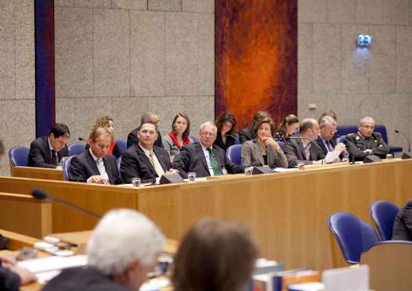 Bespreking van een wetsvoorstel over de bijzondere zorgplicht voor veteranen in de Tweede Kamer. Na een lang voortraject trad de Veteranenwet op 28 juni 2014 in werking. Foto ANP, Ph. Nijhuis