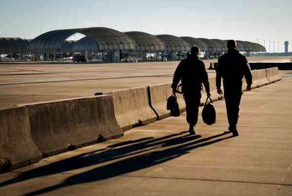 Twee vliegers van de luchtmacht op weg naar de hypermoderne F-35 op Eglin Air Force Base: technologische ontwikkelingen hebben een grote impact en het personeel moet de tools krijgen om daar mee om te gaan. Foto US Air Force, S. King jr.
