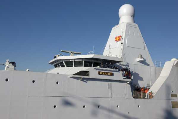 Proefvaart van de Hr. Ms. Holland, speciaal bedoeld om testen uit te voeren aan onder andere de nieuwe mast. Foto MCD, E. Klijn