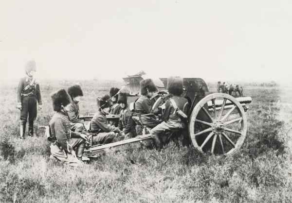 Oefening van de rijdende artillerie met 7 Veld-geschut tijdens de mobilisatie 1914-1918. Foto Beeldbank NIMH