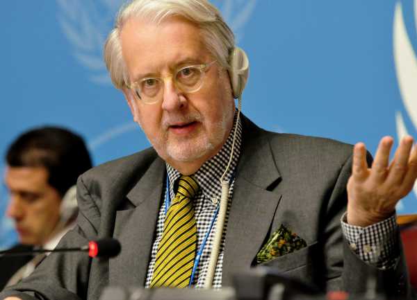 Paulo Pinheiro, voorzitter van de ‘Commission of Inquiry on the Syrian Arab Republic’, lanceert tijdens een persconferentie in Genève een VN-rapport over het leven van Syriërs onder de terreur van IS. Het rapport van de mensenrechtencommissie beschuldigt IS onder meer van moord, verkrachting en seksuele slavernij (november 2014). Foto VN, P. Wallsten