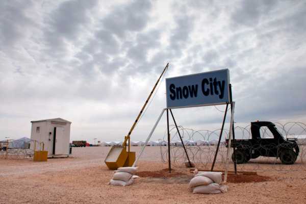 De uitvalsbasis ‘Snow City’ heeft legerings-, voedings- en sanitaire locaties voor de huisvesting van het detachement en voorzieningen voor de operationele functies, zoals werklocaties, munitieopslag en opstelplaatsen voor de F-16’s. Foto: De Vliegende Hollander