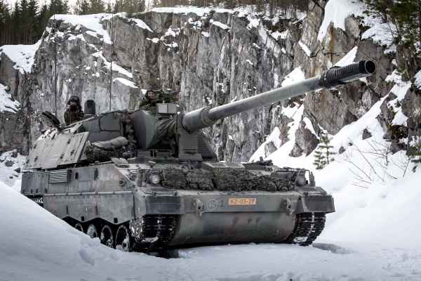 Een PzH in stelling tijdens de internationale oefening Cold Response in Noorwegen (2016). Foto MCD, G. van Es