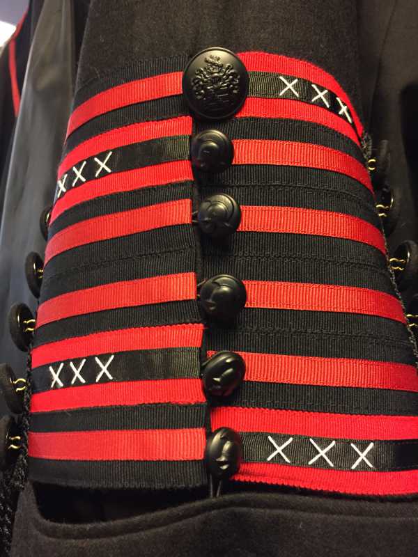 Zoals admiraal Sir George Parr geen geheim maakt van zijn militaire achtergrond,[3] heb ook ik weinig te verbergen. De Amsterdamse en academische mores gebieden dat ik hier vandaag in toga voor u sta. Maar mijn militaire achtergrond – voor zover die onbekend was gebleven – kunt u nog steeds terugvinden in de knopen op de mouwen van deze toga. ‘Ik draag een jas met goudgehelmde knopen’.[4] Velen van u kennen deze strofe uit het lijflied van het 1e Regiment Genietroepen. Deze knopen zijn voorzien van een genie-helm, maar geheel volgens de universitaire tenuevoorschriften zwart uitgevoerd. Deze knopen verbinden mijn beide professionele werelden; de militaire en de academische. Om misverstanden over het primaat voor vandaag te voorkomen zal ik mijn universitaire baret ophouden.