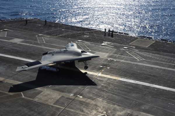 Het Amerikaanse X-47B ‘ Unmanned Combat Air System’  (UCAS) kan autonoom diverse taken uitvoeren, zoals bijtanken tijdens de vlucht,  ontwijkende manoeuvres uitvoeren, een target identificeren en opstijgen en landen van een vliegdekschip. Foto US Navy, T. Walter