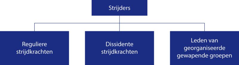 Een persoon kan een legitiem militair doel vormen zodra vastgesteld is dat de persoon (1) lid is van de strijdkrachten van de staat, (2) deel uitmaakt van de dissidente strijdkrachten van een staat, (3) lid is van een georganiseerde gewapende groep of (4) rechtstreeks aan de vijandelijkheden deelneemt. De eerste drie categorieën zijn hiervoor reeds beschreven als zijnde strijders. Personen die onder de noemer van de vierde categorie kunnen vallen, zullen hierna van verder cachet worden voorzien. Met name de notie van ‘rechtstreekse deelname aan de vijandelijkheden’ speelt een centrale rol in menig debat.