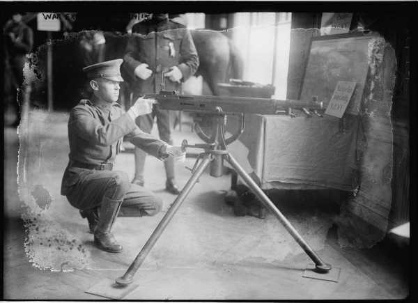 Wapententoonstelling in New York tijdens de Eerste Wereldoorlog: rond de oprichting van de Volkenbond leefde bij velen de verwachting dat landen hun bewapening zouden gaan verminderen. Foto Library of Congress