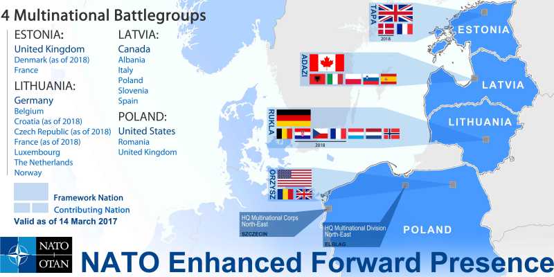 De Enhanced Forward Presence van de NAVO in Polen en de Baltische staten, maart 2017. Bron: NAVO