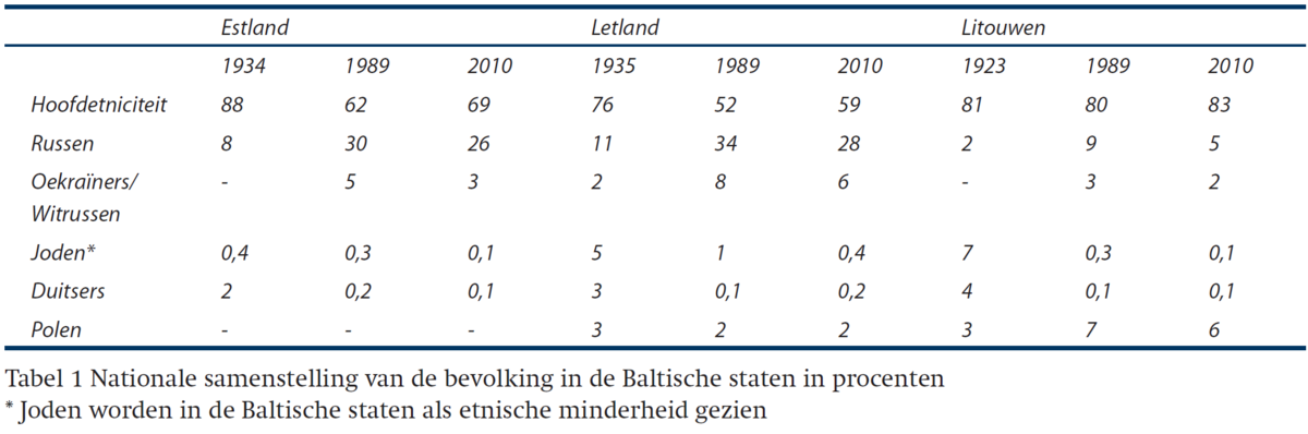 Minderheden in de Baltische staten waren er al voor dat de landen zo werden genoemd. Eerder in dit artikel hebben we kort geschetst dat de landen lange tijd door andere landen en etniciteiten, zoals Duitsers, Russen en Polen, werden bestuurd of overheerst. Tot op de dag van vandaag vormen bijvoorbeeld de burgers van Poolse komaf nog een minderheid in Litouwen, en in Estland en Letland bestaat er grote Russischtalige minderheid. Tabel 1 geeft een overzicht van de belangrijkste minderheden per land [41].