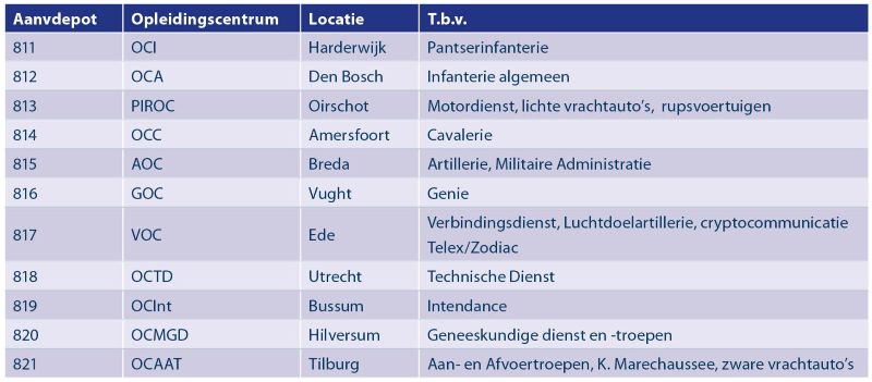 Figuur 1 Detailinformatie over de aanvullingsdepots. Bron: NL-HaNA, 2.13.182, inv.nr.755, ‘Planningsmemorandum Personeelsaanvullingssysteem’ juli 1988