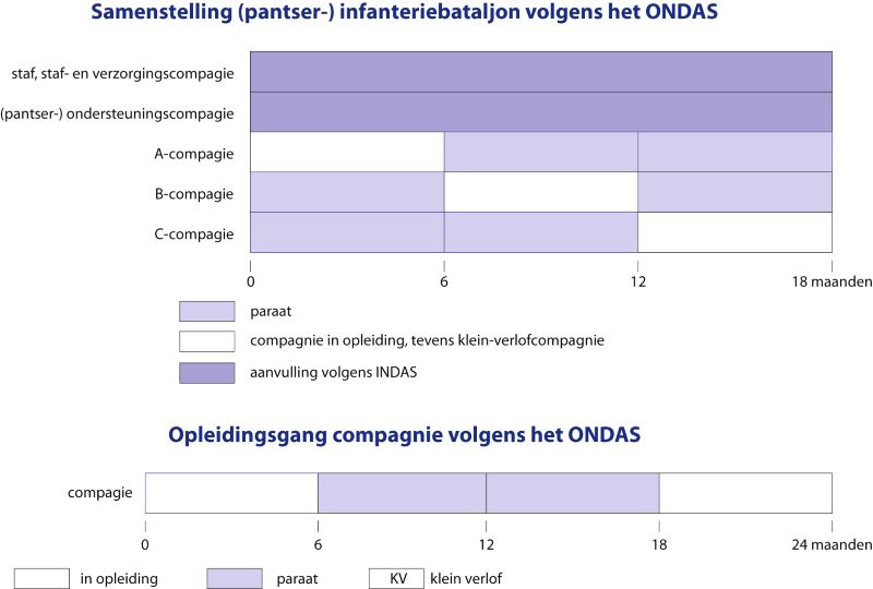 Om de tussenoplossing voor het verhogen van de kwaliteit van aanvulpersoneel goed te begrijpen, is nog iets meer organisatie-technische context vereist. In de latere Koude Oorlog werden, gewoon in vredestijd, de door dienstplichtigen te vervullen functies in staven en andere specialistische rollen op individuele basis gevuld en afgelost: het individuele aanvulingssysteem (INDAS). Maar dienstplichtigen ingedeeld bij de grote gevechts- en gevechtsondersteunende eenheden van 1LK werden als pelotons of compagnieën tegelijk opgeleid en stroomden als groep in bij de eenheden. Dit was het zogenoemde onderdeels-aanvullingssysteem (ONDAS). Aan het einde van hun parate periode gingen ONDAS-militairen eerst met kleinverlof (KV), waarbij zij, in geval van mobilisatie, binnen 24 uur paraat en direct inzetbaar moesten kunnen zijn bij hun eigen eenheid. Daarna gingen zij, nog steeds als groep, met grootverlof en waren nog 14-16 maanden oproepbaar als RIM-eenheid (Rechtstreeks Instromend Mobilisabel). Na de RIM-periode eindigden zij, net als de uitstromers die een INDAS-functie hadden vervuld, in het grote reservoir dienstplichtigen; uit dat reservoir werden, als hierboven al benoemd, aparte mobilisabele reserve-eenheden geformeerd.[19] Midden jaren tachtig werd besloten dat reservisten die recent bij een RIM-eenheid ingedeeld waren geweest, eerst een half jaar tot een jaar voor personeelsaanvulling werden geoormerkt voordat zij beschikbaar kwamen voor de formering van nieuwe reserve-eenheden (zie ook figuur 6).[20] Omdat de stelregel was: hoe recenter gediend, hoe meer ‘up to date’, was deze keuze een verandering van prioriteit ten faveure van het personeelsaanvullingssysteem en indirect dus ook ten faveure van het legerkorps boven de territoriale sector.
