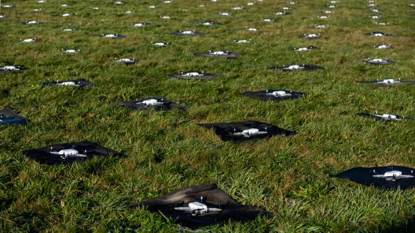 Drones liggen klaar voor een zwerm-demonstratie. Drones hebben oorlogvoering veranderd, en de krijgsmacht moet zich aan deze ontwikkeling aanpassen door speciale dronebataljons op te richten. Foto NAVO