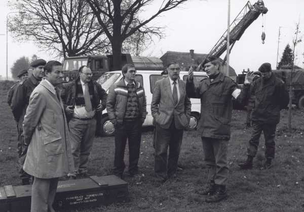 Leden van de vaste commissie voor Defensie van de Tweede Kamer bezoeken het Nationaal Territoriaal Commando, 1989: in het Nederland van nu zal samenwerking tussen Defensie en civiele partijen nog complexer zijn. Foto Beeldbank NIMH