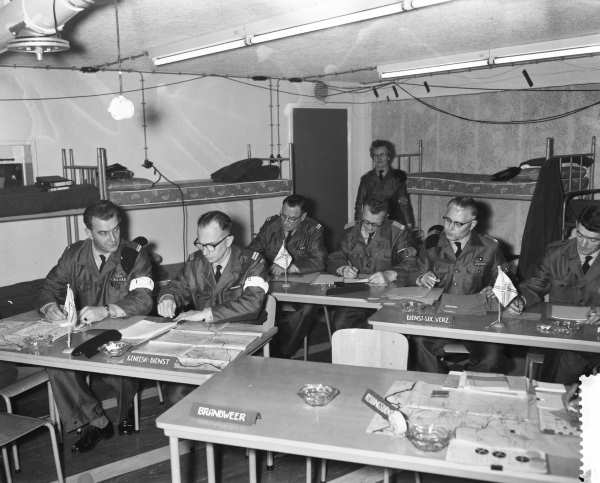 Oefening van de Bescherming Bevolking met diverse partners in een bunker in Berg en Dal, 1960. Foto Nationaal Archief/Anefo, Joop van Bilsen