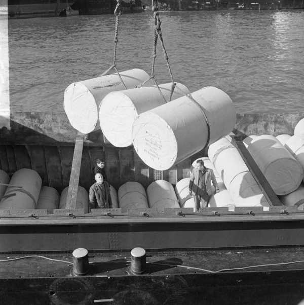De binnenvaart als civiele partner in de logistiek: aan de eventuele vordering en militarisering van schepen kleefden veel onzekerheden. Foto Nationaal Archief/Anefo, Eric Koch