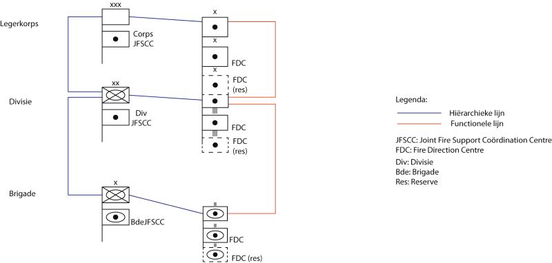 Figuur 1 Voorbeeld van de functionele lijn tussen artillerie-eenheden van de verschillende formaties
