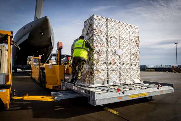 Het laden van hulpgoederen voor Afrika op Vliegbasis Eindhoven: waarom zou iemand alleen religie bestuderen en niet politieke corruptie, armoede en uitbuiting? Foto MCD, Mike de Graaf