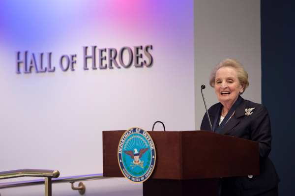 Madeleine Albright bekende dat zij de lens waardoor zij de wereld bekeek had moeten bijstellen naar haar aantreden als minister van Buitenlandse Zaken van de VS. Foto DVIDS, Adrian Cadiz