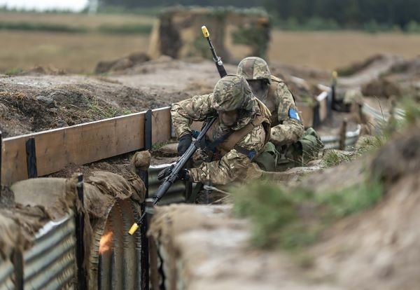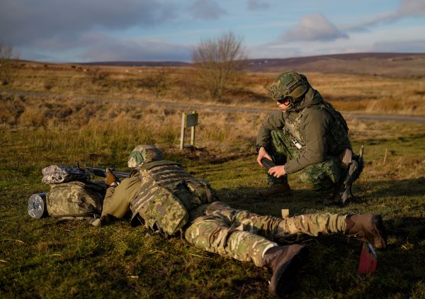 Nederlandse instructeurs trainen Oekraïense rekruten in het kader van operatie Interflex in het Verenigd Koninkrijk. Foto 17 Pantserinfanteriebataljon GFPI