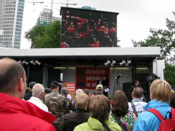 Militairen en burgers demonstreren in Den Haag naar aanleiding van de beleidsbrief ‘Defensie na de kredietcrisis’ (april 2011) waarin staat dat de formatie van Defensie wordt gereduceerd en heringericht. Foto W. den Dunnen