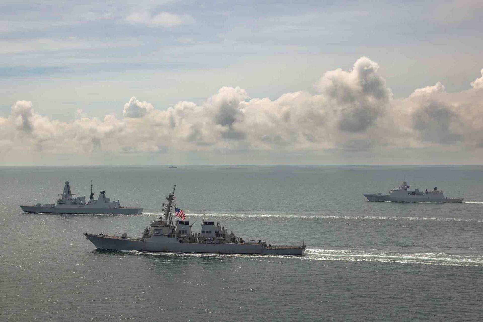 Het optreden van Zr.Ms. De Ruyter (rechts) in de Straat van Hormuz in 2020, in een commandoconstructie in samenwerking met Frankrijk, toonde aan hoe Den Haag met marineschepen een typisch Nederlands evenwichtsbeleid kan voeren. Foto MCD, Aaron Zwaal