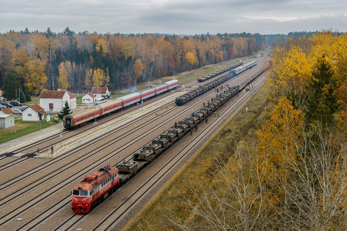 Poolse pantservoertuigen op treinen in Litouwen. Militaire mobiliteit is cruciaal voor de heroriëntatie op collectieve verdediging. Vorderen kan knelpunten in transportmiddelen ondervangen. Foto NATO