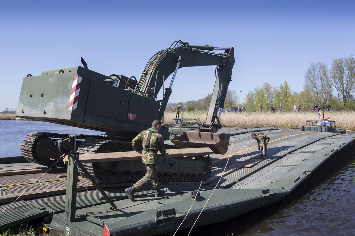 De Genie oefent civiel-militaire samenwerking met een waterschap. Welk signaal geeft Defensie af als het overgaat tot het (voorbereiden van) het vorderen van civiel materieel? Foto MCD, Eva Klijn