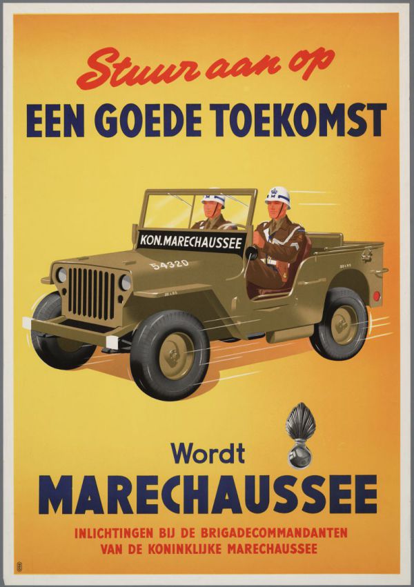 Wervingsposter van de Koninklijke Marechaussee uit de jaren vijftig. Bron: Nationaal Militair Museum