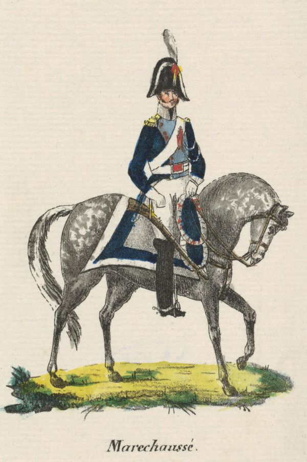 De benaming Gendarmerie was in de tijd van de Franse Revolutie ingevoerd ter vervanging van de oude term Maréchaussée. Hoewel Willem plannen had de marechaussee, die al snel het predicaat ‘koninklijk’ ging voeren, ook in de Noordelijke Nederlanden in te voeren, was dat om budgettaire redenen niet te realiseren. Alleen in Limburg (1815) en in Noord-Brabant (1818) kwam vóór het einde van de negentiende eeuw een compagnie marechaussee. De tot de landmacht behorende marechaussee fungeerde voornamelijk als politiekorps op het platteland. Zij onderscheidde zich op drie manieren van de gewone, civiele politie. Dit betrof in de eerste plaats de militaire status van het korps, die garant stond voor een gedegen opleiding en bewapening, en bovenal voor een strikte discipline. De taakuitoefening was niet vrijblijvend, maar kon middels militaire tucht worden afgedwongen. In de tweede plaats was het korps grotendeels bereden, waardoor de marechaussee een groter gebied kon bestrijken en misdadigers op de vlucht sneller kon achterhalen. Vooral in de grensstreek was dat een voordeel, omdat criminelen vaak probeerden om over de grens aan opsporing te ontkomen. In de derde plaats traden marechaussees niet individueel maar in groepsverband op. Het begon er al mee dat zij in brigades van meestal vijf man gezamenlijk waren gehuisvest (gekazerneerd), wat ertoe bijdroeg dat zij te allen tijde onmiddellijk beschikbaar waren.