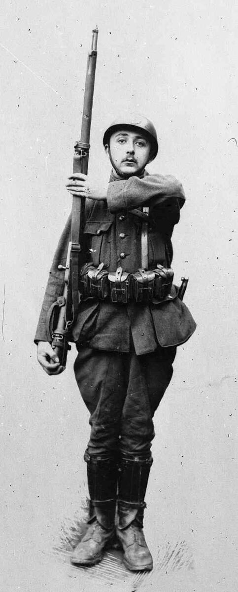 Vanaf 1915 kregen de Belgen nieuwe uniformen en helmen. Kaki deed zijn intrede en de Franse Adrianhelm hielp het aantal hoofdblessures verminderen. Foto War Heritage Institute