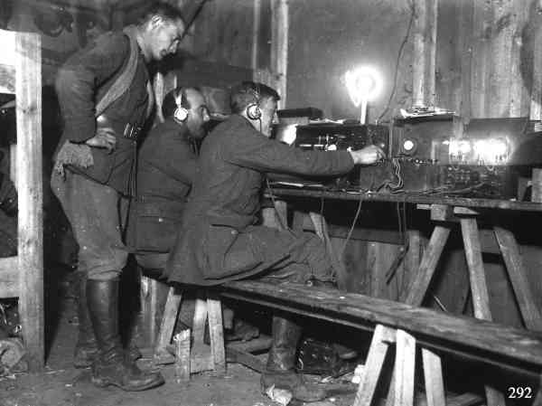 De draadloze telegrafie was tegen 1918 goed ingeburgerd bij de Belgische grond- en luchtstrijdkrachten. Door de omvang van de toestellen was ze niet geschikt voor gebruik in de frontlinie. Foto War Heritage Institue