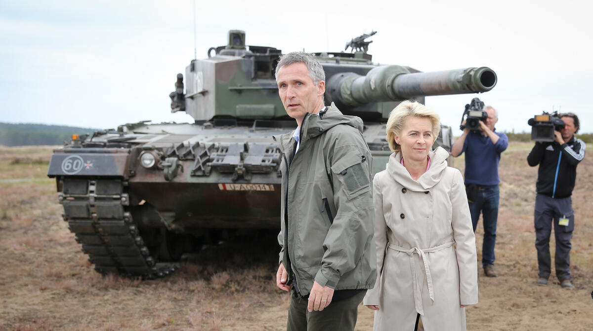 Secretaris-generaal van de NAVO Jens Stoltenberg en voorzitter van de Europese Commissie Ursula von der Leyen. Zijn de NAVO en EU concurrerend of complementair aan elkaar? Foto Picture Alliance, Kay Nietfeld