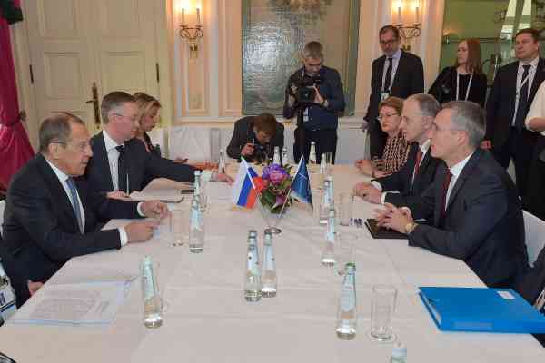 At the Munich Security Conference in February 2020, NATO Secretary General Jens Stoltenberg (right) and Russian Foreign Minister Sergey Lavrov (opposite) discuss security matters. Photo NATO