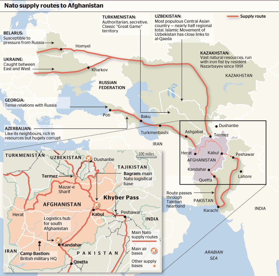 Overzicht van de NAVO-aanvoerroutes