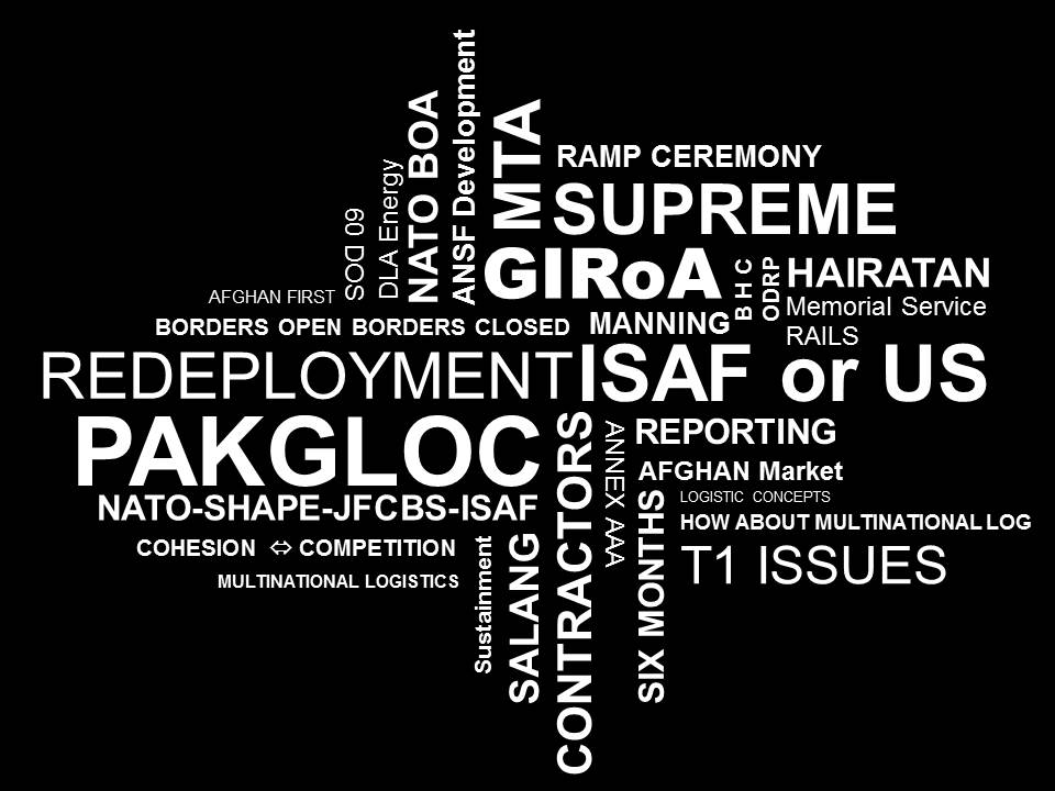 De vraag is uiteraard of het uitbesteden van de militaire logistiek wel zo verstandig is. De aanleiding voor deze vraag is mijn persoonlijke ervaring met de logistiek in de ISAF-missie, waar ik als sectiehoofd onder de CJ4 ISAF, brigadegeneraal Van Keulen, heb gewerkt. De CJ4 ISAF is verantwoordelijk voor alle materieellogistiek op militair-strategisch niveau, voor alle landen en alle krijgsmachtdelen. Een uitzondering hierop zijn de logistieke klassen die landen zelf in handen willen houden, zoals munitie. De taak van CJ4 ISAF richt zich vooral op de logistieke inrichting van het gehele strategische verantwoordelijkheids- en interessegebied (wat veel ruimer is dan alleen Afghanistan) en het onderhouden van contacten met hogere NAVO-hoofdkwartieren en de Afghaanse en naburige centrale overheidsinstanties.
