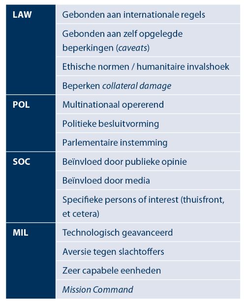 • POL: de inzet van de Nederlandse krijgsmacht is afhankelijk van politieke besluiten, internationale cohesie en solidariteit;