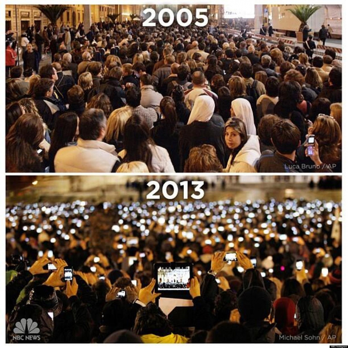 De toegang tot communicatiemiddelen en de bereidheid om deze te gebruiken (zoals hier bij twee verschillende pauselijke inhuldigingen) zal waarschijnlijk ook doorzetten in de rest van de wereld